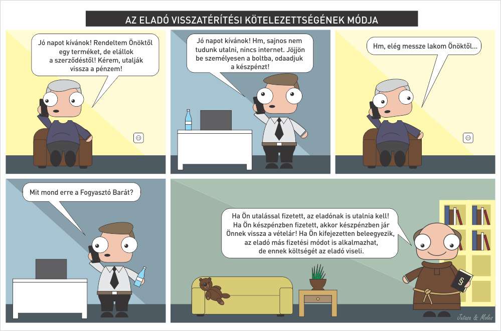 Eladó a fogyasztónak visszajáró összeget a fogyasztó által igénybe vett